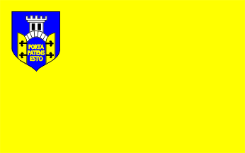 Obviously, the motto on the flag means simply: "Gate, be thou open."
