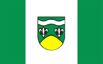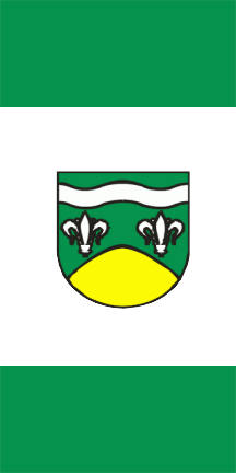 Flag: rectangular piece of cloth in the ratio of 5:8 divided into three vertical bands: green-white-green. In the middle of the white band the Arms are placed."