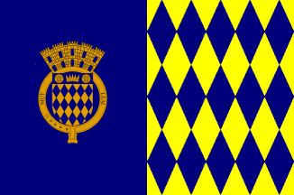 Arms and flag. The three vertical lines indicate the three