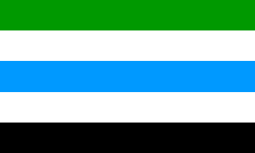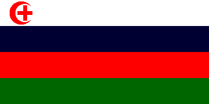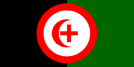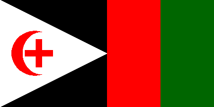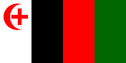 1:2A green-black-red horizontal tricolor with the identical cross-crescent device (in white) centered near the hoist.