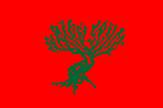 A green olive tree on a red field. The olive tree is the electoral symbol of the party.