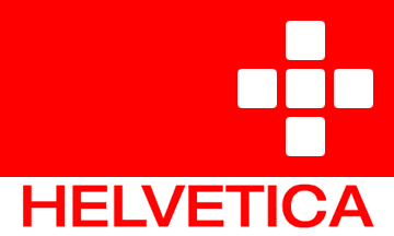 In the previous version of the site, a photo showing the flag “on location” was shown; this photo is also used as wall decoration in the stores. It depicts a suitable Swiss landscape with a flag pole (it seems digitally added) sporting a flag. This is ~1:2 red with a white bottom stripe with red lettering "HELVETICA" in wide sans letters and the logo in white at the hoist. (Not a bad design, all considered.)