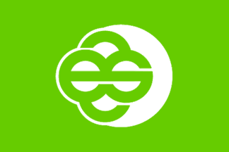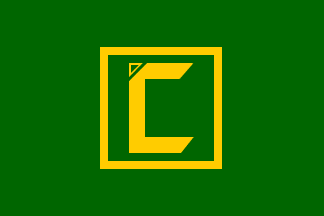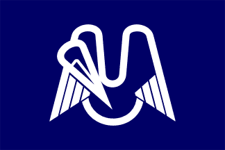 And hence the flag, which is deep blue with the logo in white in the centre and nothing else. I seem to recall that I once saw a variation of this flag in white with the logo in blue (lighter than the field of the official flag), but I’m not sure.