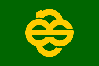 It is a 2:3 plain flag in yellowish orange with white logo above dark blue