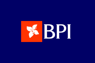 Portuguese bank BPI (Banco Português de Investimento) has a 2:3 white flag with its logo on it.