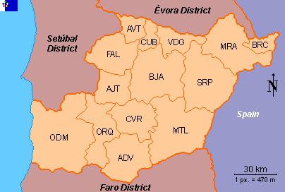 Clickable map of Beja district (Portugal)