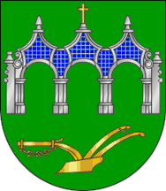 Municipality have adopted arms and flags.