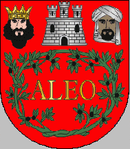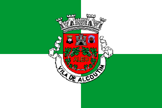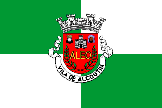 I’ve seen two versions of the arms, and the one I drew is the one seen in older sources, so it may have been changed a little recently. The description, however, is identical: a red field with a silver castle in chef sided by a Christian king at dexter and a Moorish king at sinister. The remaining field is occupied by the word "ALEO" in gold surrounded by two crossed branches of some unidentifiable plant. The coat of arms is completed by a silver 4-towered mural crown and by a scroll reading "VILA DE ALCOUTIM" (see left flag image above).
