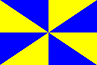 lines silver-blue-silver. The castle has three towers, the central one is charged
