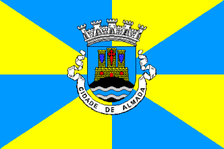 mural crown, a typical scroll reading "CIDADE DE ALMADA"