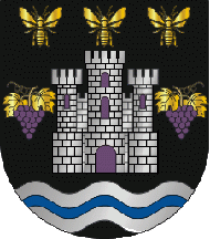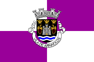 As usual, the arms revert to the fortifications of the town (the castle), the river (wavy lines) which is interesting because I couldn’t find any river near the town itself, rather 3 somewhat important creeks in the municipal territory (Vide, Divor and Tera), plus references to some products of the traditional agriculture: grapes and wine (the grapes) and honey (the bees). Interesting that the tapestry industry is not represented in the arms, since it is by far the main reason why Arraiolos is known. But then again, I guess it’s difficult to represent such a thing in a coat of arms.