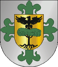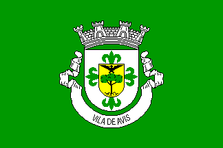 The coat of arms has a 4-towered mural crown, a scroll reading "VILA DE AVIS" and a shield, as always. The shield has a green Avis cross on a white (probably silver in the official description) background, and an inescutcheon centred in the cross. The inescutcheon is charged with a black eagle over a tree (probably a cork-oak) proper on a golden background. In a different source, the scroll comes with the inscription "CÂMARA MUNICIPAL DE AVIS" and in a very light yellow instead of white.