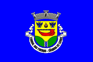 It is a typical Portuguese communal flag, with the coat of arms centred on a plain blue field.