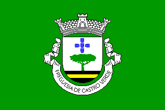 and white scroll reading in black upper case letters "Freguesia de Castro