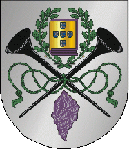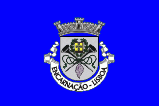 hield Argent, two trumpets Sable lined Argent and crossed per saltire, upon the honour point a golden book superimposed by five inescutcheons Azure, set in cross, each one bearing five plates, the whole enveloped by two laurel branches Vert fruited Or, in base a conch Purpure. Mural crown Argent with three visible towers (village rank) and white scroll reading in black upper case letters "ENCARNAÇÃO - LISBOA".