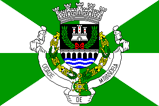 It is a fairly typical Portuguese municipal flag, with the coat of arms centred on a field gyronny (meaning city rank) of green and white.