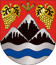 wavy Azure three coupeaux Sable snowed Argent between two bunches of grapes Or