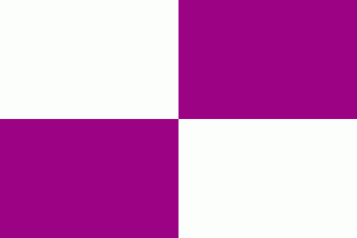 It is a quite typical Portuguese municipal flag, with the coat of arms centred on a quartered background (meaning town rank) of white and purple.