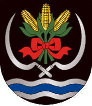 The arms are sable three maize ears fruited or and stalked and leaved vert