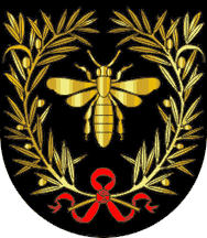 The bee on the arms may stand for local honey production, and the olive branches for local oil production.