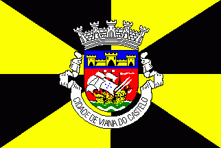 The flag was quartered (town rank) black over yellow with the coat of arms centred. The weird thing here is that Viana do Castelo had city rank and thus the coat of arms crown was five-towered, but the flag itself remained quartered, as those of towns…