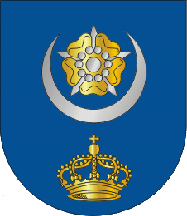 Rose, lying crescent and crown are attributes of St. Mary. She is local patron saint ad name giver in her aspect as Our Lady of Conception.