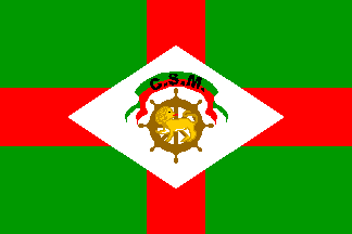 a green field. A white lozenge is superimposed in the center of the flag