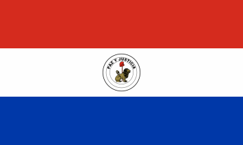 Flag of the Republic*. The flag of the Republic shall be the symbol made of the Paraguayan flag charged with its two coat of arms, placed in the center of the white stripe, on the obverse and reverse, respectively, in the design prescribed by Article 1 of the Resolution of 25 November 1842 of the Sovereign Congress General Extraordinary, whose text says: "The Sovereign Congress General Extraordinary of the Republic of Paraguay solemnly declares that the flag of the Republic shall be the same as the one used by the country, with adequate variations, that is, a flag made of three horizontal stripes coloured in white and blue. On the one side is placed the national coat of arms with palm and olive [branches] interlaced in base and surrounding a star. In the border the lettering 'República del Paraguay'. On the opposed side, a circle with the lettering 'Paz y Justicia' [Peace and Justice], and in the center a lion ensigned with the symbol of liberty".Article 3.