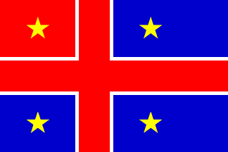 Keywords: cross: offset (white) | cross: offset (red fimb. white) | cross: offset (blue fimb. white) | star: 5 points (yellow) | stars: 4 (yellow) |