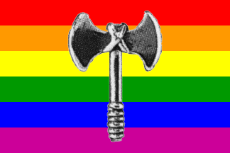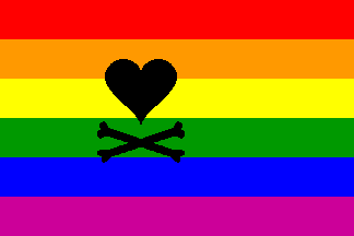 Keywords: rainbow flag | stripes: 6 | smiley | labrys | earth | map: earth | hat: cowboy | aids | pirate | crossed bones | heart (black) | aids | matlovich (leonard) |