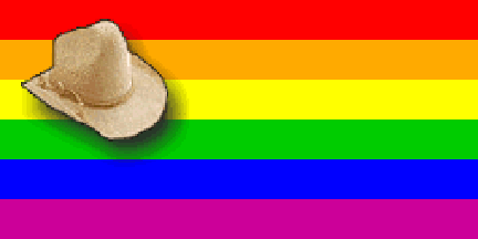 This is the rainbow flag with a cowboy hat for “gay cowboys”.