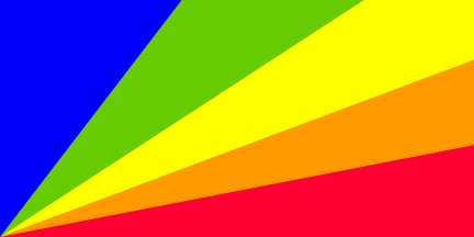 The proportions of the flag are 2 by 1. There are five colored rays,