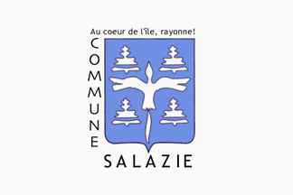The flag hoisted on the town hall of Salazie, and confirmed by the Municipal PR Department, is white with the municipal logo, which includes the municipal arms, name and motto.