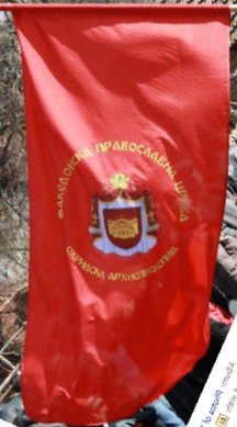 image located by Valentin Poposki, 20 February 2013Regarding the arms and flags of the Macedonian Orthodox Church, the flag is red with the arms but