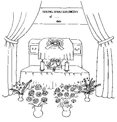 If possible, a Unification Church flag should cover the casket of a blessed member during a Seung Hwa Ceremony and then be buried on top of the casket.
