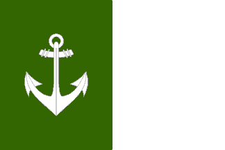 Art. 7. The distinctive ensign of the Coast Guard is the mark that shows that these ships have an authority charged with the guarding and defense of the Romanian borders aboard. It is represented by a white rectangular bunting cloth, with the half near the hoist colored in green. The green half has a white anchor in the middle.Alex Danes 3 October 2008
