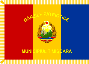 Art. 1. The military colors are the symbol of the honor, bravery, and military glory. They remind each soldier, sergeant, non-com, officer and general his sacred duty of serving faithfully his Homeland, to defend with energy, skills and abnegation, even self-sacrifice, the borders, independence and sovereignty of the Socialist Republic of Romania.The decree nr. 90 from 27 April 1977, which established the military colors of the Patriotic Guards, also provided the standard dimensions of the military colors: