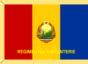 Art. 3. The military colors of the military units and great units of all weapons, excepting the Navy ships and Coast Guard ships is represented by a rectangular silk cloth, with the colors and the coat of arms of the Socialist Republic of Romania printed on both sides.