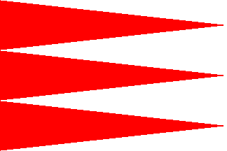 White with three red triangles, the bases of which touch each other and cover the hoist, and the apexes of which touch the fly.