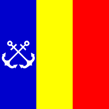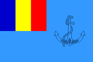 The image was reproduced in FOTW format from images at the Romanian Military website, but the detail of the anchor is my problem. It shows a single blue foul anchor with black holding lines. Any change must have been quite recent.
