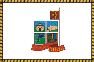 The flag of Knić is white with a yellow fringe and the greater