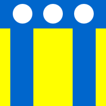 The banner of the former municipal arms of Požarevac was official in 2001-2005. Yellow represents the fertile fields surrounding the town, while the blue field is in the shape of the Greek letter π, referring to the confluency of rivers Morava and Mlava into Danube. Three white discs are positioned in the chief of the banner.Ivan Sarajčić, 8 February 2008