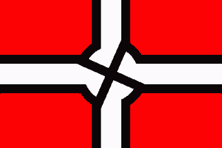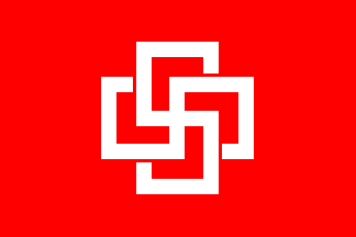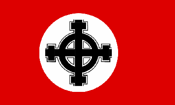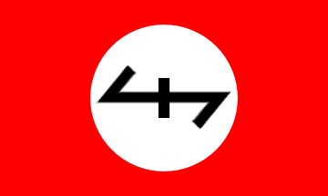 red flag with a large white disc, charged with a variant of wolfsangel symbol in black. The image of this flag could be seen at the movement website, which is no longer available online (the