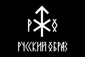 ideology, called Russism, is meant to be a "localized" form of Nazism. The party flag is white with a large black cross potent in the centre; the cross has an inner white and an outer black fimbriation. The aspect ratio is 1:2, as can be seen at the photo gallery from the party website. As Vladimir,Popov, party leader's deputy, wrote in his book "Returning of Russia: On the Path Towards the Russian State", the party emblem is the combination of two swastikas, one right-facing and one left-facing.
