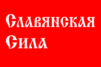 After the Slavic Union was banned, the Slavic Force (Slavyanskaya sila) was founded by Dmitry Demushkin to replace it. The organization uses either red or black flags with the name of the organization in white, inscribed in two lines in a medieval-looking typeface, following the previous practice of the Slavic Union.