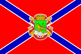 the modified Russian naval jack (blue saltire fimbriated white on a red