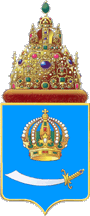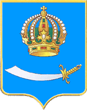 Clause 11. The arms of the Astrakhan Region represents four-coal, with ovale by the bottom corners pointed in an extremity shield. In a light-blue field of a shield - gold crown consisting of a hoop with three visible leaf-formed and gold mitra, fastened by five visible arches decorated with pearls, with green lining. Mitra crowned by a gold orb with a cross. Under the crown an eastern sword silver with gold hilt turned to the right. Shield crowned by an imperial ring, the called Astrakhan cap.
