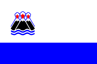 Flag of Kamchatka Territory is a rectangular flag divided horizontally on the bottom of the blue and the upper part white, which is placed the emblem of the Kamchatka region.