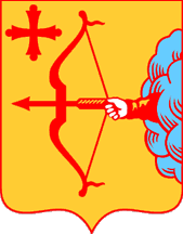 Keywords: kirov | marinsk | vyatka | coat of arms: bow | bow | arrow (red) | arrow: to dexter | arrow: to hoist | cross (red) | arm | cloud |