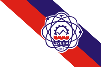 The flag of Dubna is white color with two diagonal stripes of